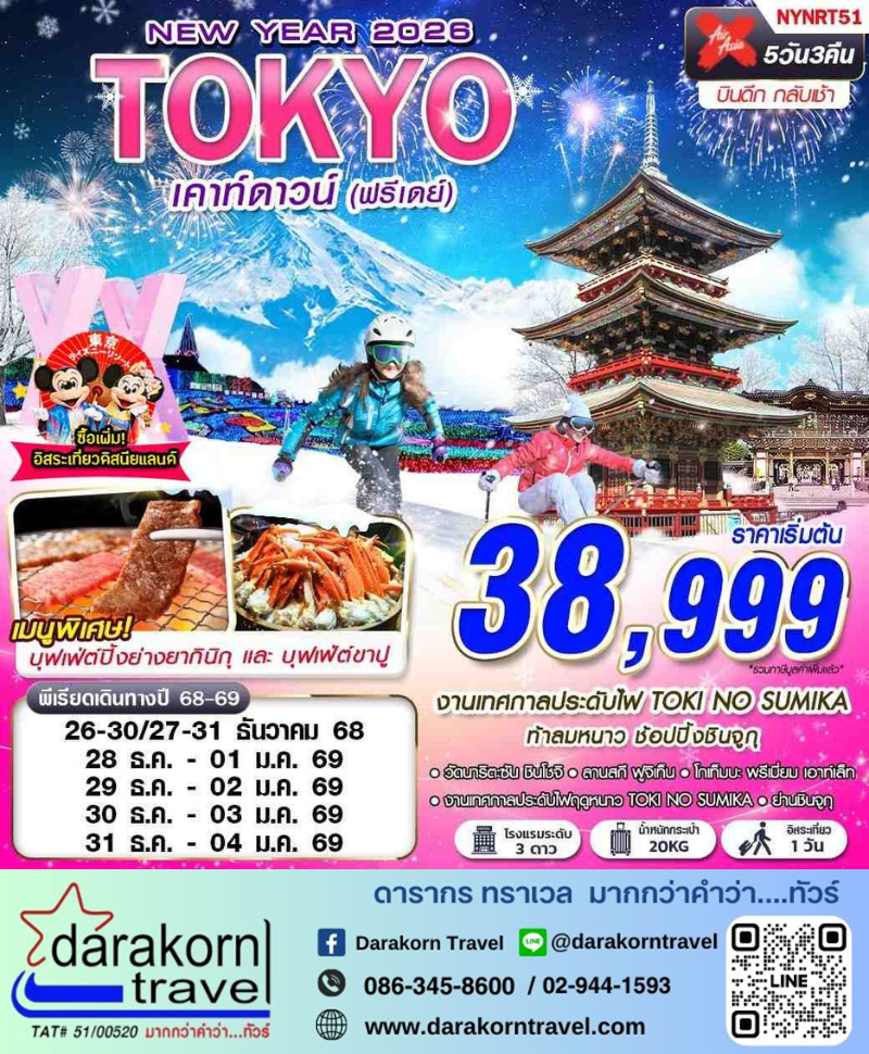 ทัวร์ญี่ปุ่น - WINTER เคาท์ดาวน์ (FREEDAY ปีใหม่) 5วัน3คืน(XJ)เดือนธันวาคม 2568