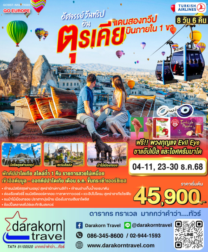 ทัวร์ตุรกี - อัศจรรย์ วันทริปอินตุรเคีย แดนสองทวีป(บินภายใน1ขา) 8วัน6คืน(TK)เดือนธันวาคม 2568