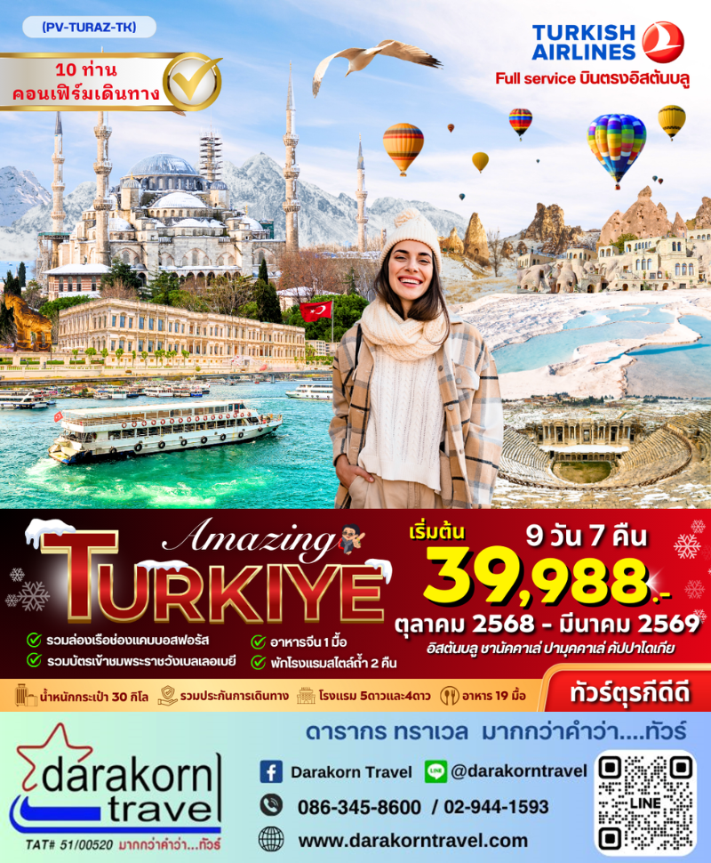 ทัวร์ตุรกี - AMAZING TURKEY 9วัน7คืน(TK)เดือนพฤศจิกายน 2568 - มีนาคม 2569