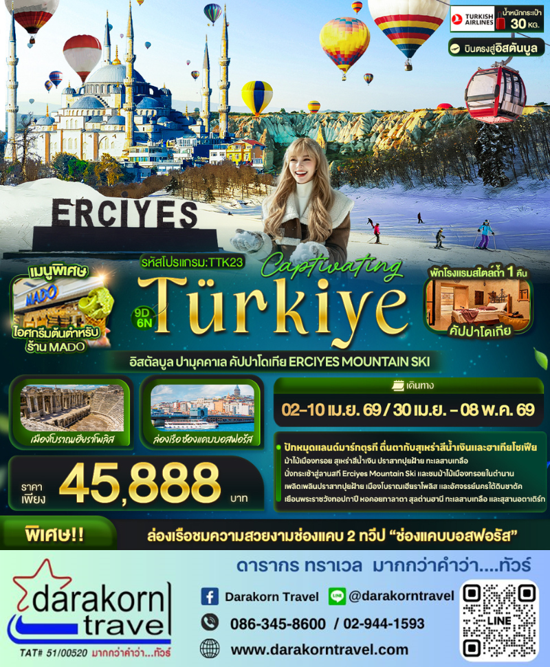 | DAY1 | ท่าอากาศยานนานาชาติสุวรรณภูมิ ประเทศไทย – ท่าอากาศยานนานาชาติอิสตันบูล ประเทศตุรเคีย – เมืองอิสตันบูล |