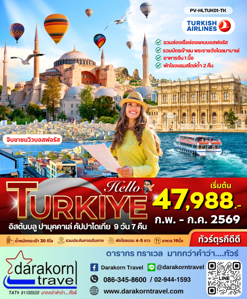 | DAY1 | สนามบินสุวรรณภูมิ – อิสตันบูล – พระราชวังโดลมาบาเช่ – GALATA BRIDGE |