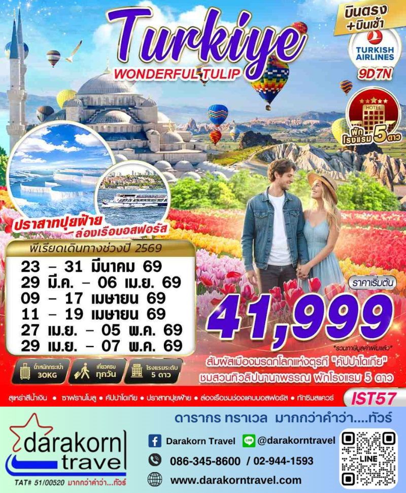 ทัวร์ตุรกี - TURKIYE WONDERFUL TULIP 9วัน7คืน(TK)เดือนมีนาคม - เมษายน 2569