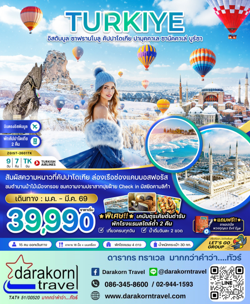 | DAY1 | สนามบินสุวรรณภูมิ ประเทศไทย – สนามบินอิสตันบูล ประเทศตุรเคีย – เมืองอิสตันบูล – สุเหร่าสีน้ำเงิน – ฮิปโปโดรม – วิหารฮาเกีย โซเฟีย – ล่องเรือช่องแคบบอสฟอรัส – กาลาตาพอร์ต |