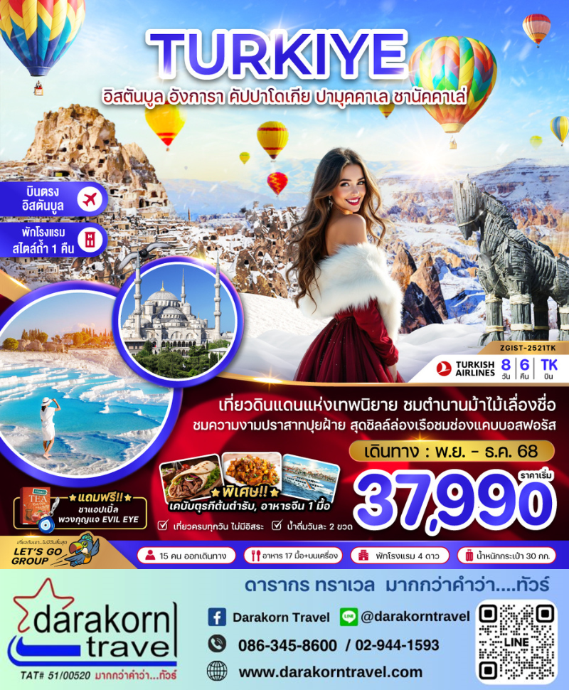 ทัวร์ตุรกี - WINTER อิสตันบูล อังการา คัปปาโดเกีย ปามุคคาเล่ ซานัคคาเล 8วัน6คืน(TK)เดือนพฤศจิกายน - ธันวาคม 2568
