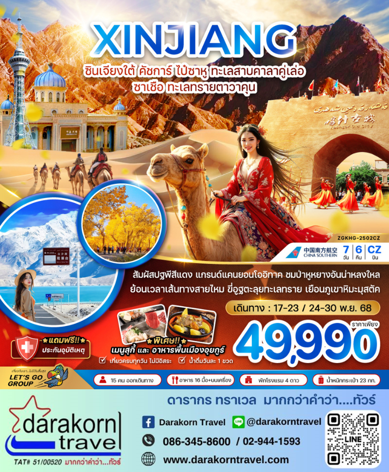 | DAY1 | สนามบินสุวรรณภูมิ – กว่างโจวไป๋หยุน – สนามบินคัชการ์–เมืองคัชการ์ |