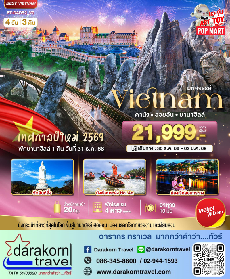 DAY1 | สุวรรณภูมิ กรุงเทพฯ•สนามบินดานัง •Wonder Park •Apec Park•ร้านเยื่อไผ่ •สะพานมังกร |
