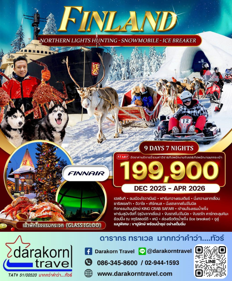 ทัวร์ฟินแลนด์ - ทัวร์ฟินแลนด์ พักโรงแรมกระจก 9วัน7คืน(AY)เดือนธันวาคม 2568 - เมษายน 2569