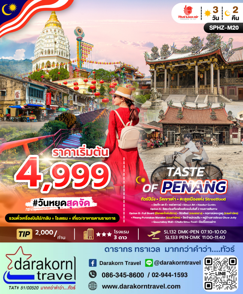 | DAY1 | กรุงเทพฯ (สนามบินดอนเมือง)–วัดเค็ก ลก ซี–จอร์จทาวน์–Street Art – Hawker Centre |
