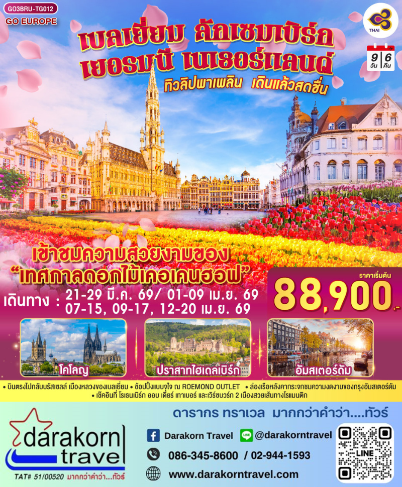 | DAY 7 | อัมสเตอร์ดัม -สวนดอกไม้เคอเคนฮอฟ – บรัสเซลส์ – ถ่ายรูปอะโตเมี่ยม – จัตุรัสแกรนด์เพลส |