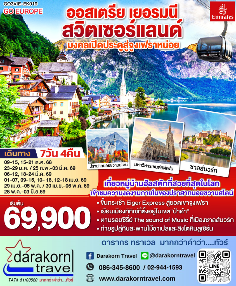 DAY 3 | เวียนนา – ฮัลสตัท – เดินเล่นหมู่บ้านมรดกโลก– ซาลส์บวร์ก -ชมสวนมิราเบลล์ – ชอปปิงถนนเกไทรย์เดอกาสเซอ – โรเซนไฮม์(ประเทศเยอรมนี ) |