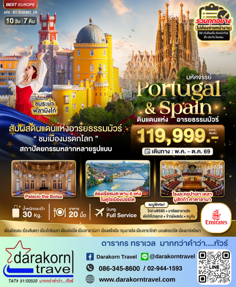 ทัวร์ยุโรป - มหัศจรรย์...โปรตุเกส สเปน ดินแดนแห่งอารยธรรมมัวร์ 10วัน7คืน(EK)เดือนพฤษภาคม - ตุลาคม 2569