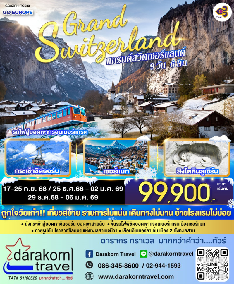 | DAY6 | เบิร์น – นั่งกระเช้าสู่ยอดเขาชิลธอร์น – หมู่บ้านเลาเทอร์บรุนเนิน – น้ำตกชเตาบ์บาค – อินเทอร์ลาเก้น – เบิร์น |