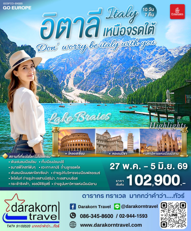 ทัวร์ยุโรป - DON’WORRY BE ITALY WITH YOU 10วัน7คืน(EK)เดือนพฤษภาคม 2569
