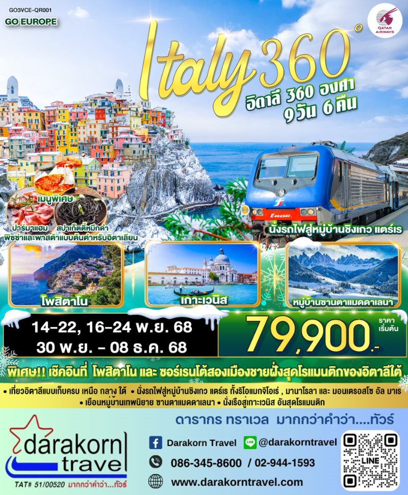 ทัวร์ยุโรป - ITALY 360° อิตาลี 9วัน7คืน(QR)เดือนพฤศจิกายน 2568