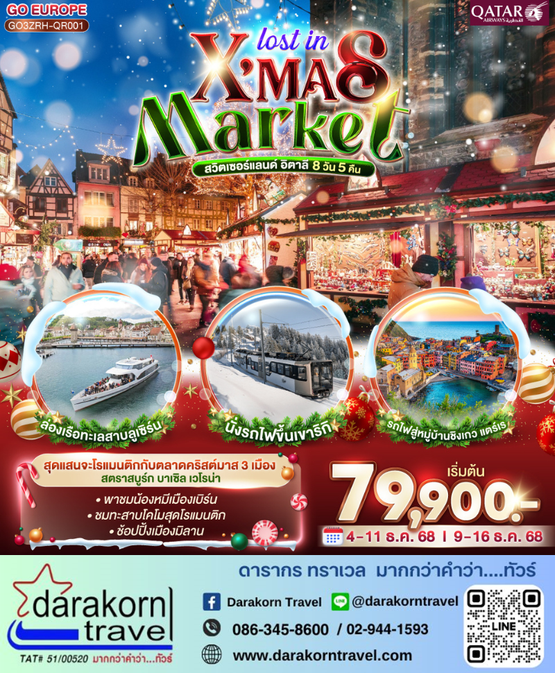 ทัวร์ยุโรป - LOST IN X MAS MARKET 8วัน5คืน(QR)เดือนธันวาคม 2568