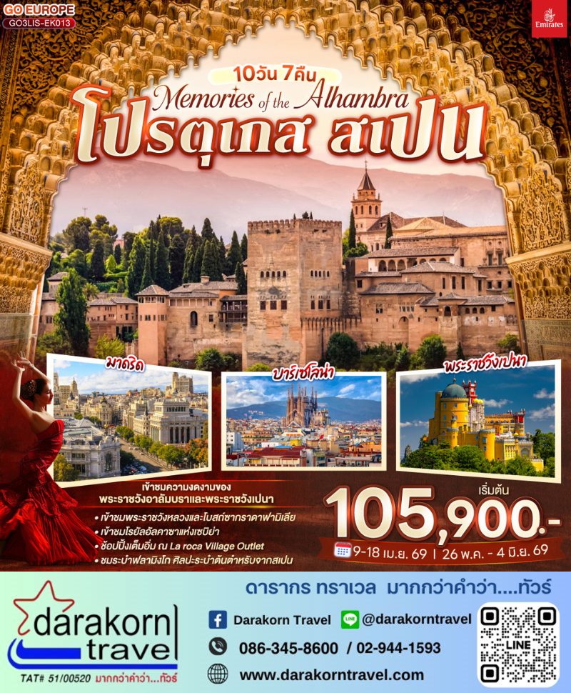 ทัวร์ยุโรป - Memories of the Alhambra 10วัน7คืน(EK)เดือนเมษายน - พฤษภาคม 2569