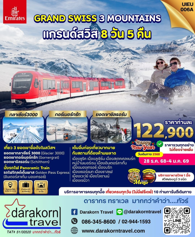 | DAY5 | เมืองเซอร์แมท-ยอดเขากอร์เนอร์กรัท (แมทเธอร์ฮอร์น)เมืองซาสเฟ |
