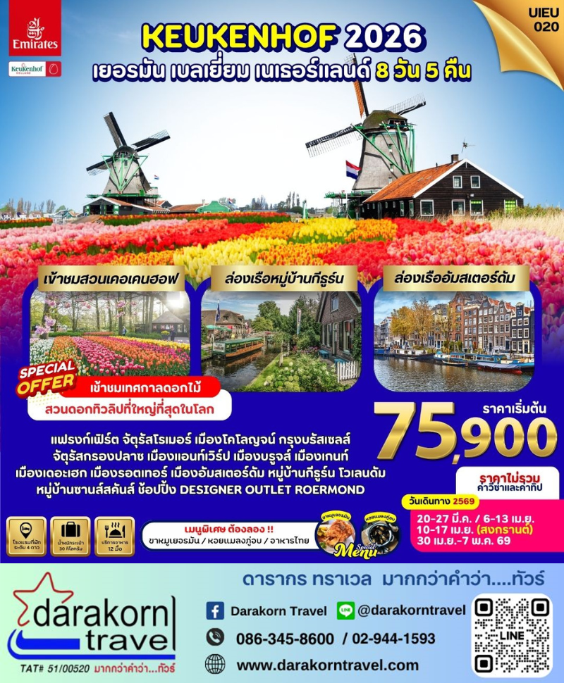 | DAY7 | เมืองอัมสเตอร์ดัม-โวเลนดัม-หมู่บ้านซานส์สคันส์-สวนดอกไม้เคอเคนฮอฟ-สนามบิน |