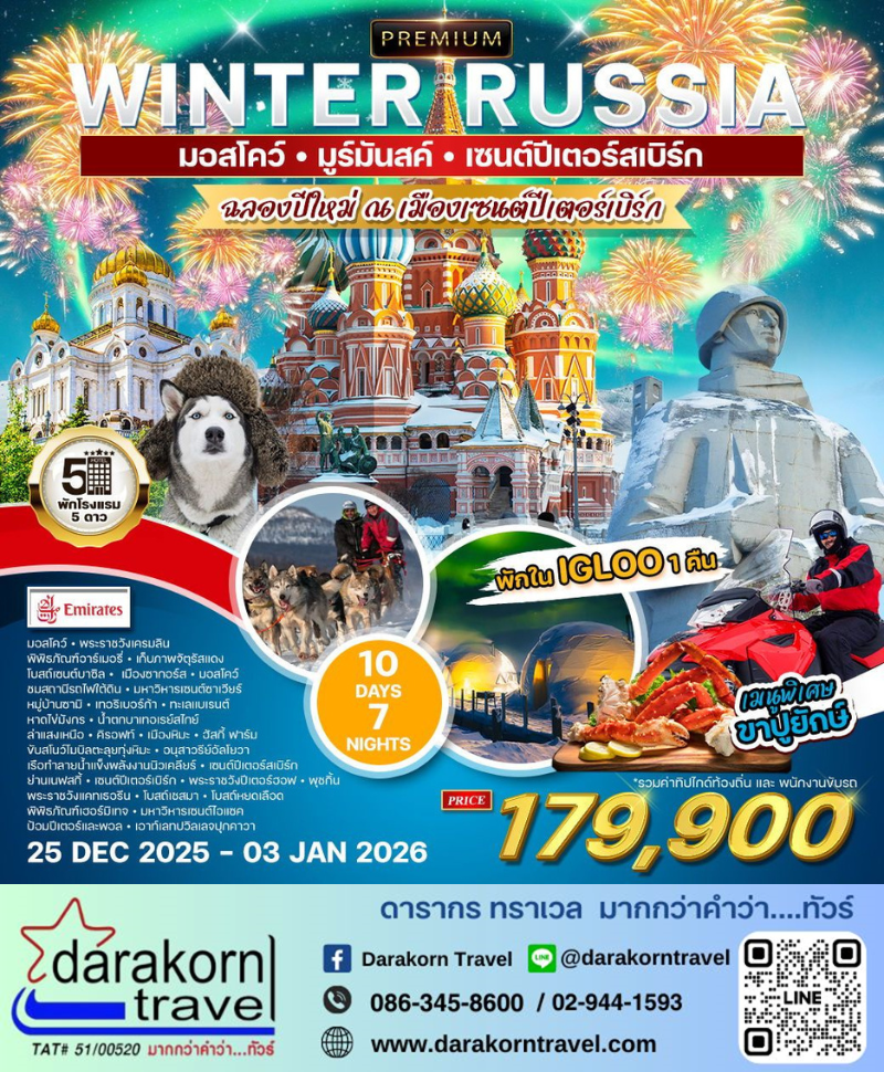 ทัวร์รัสเซีย - ปีใหม่ แกรนด์รัสเซีย (พักห้องพักสไตล์ IGLOO) 10วัน7คืน(EK)เดือนธันวาคม 2568