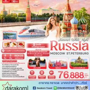 ทัวร์รัสเซีย - รัสเซีย แสงเหนือ มอสโคว์ มูร์มันสค์ 8วัน5คืน(W5)เดือนกุมภาพันธ์ 2569