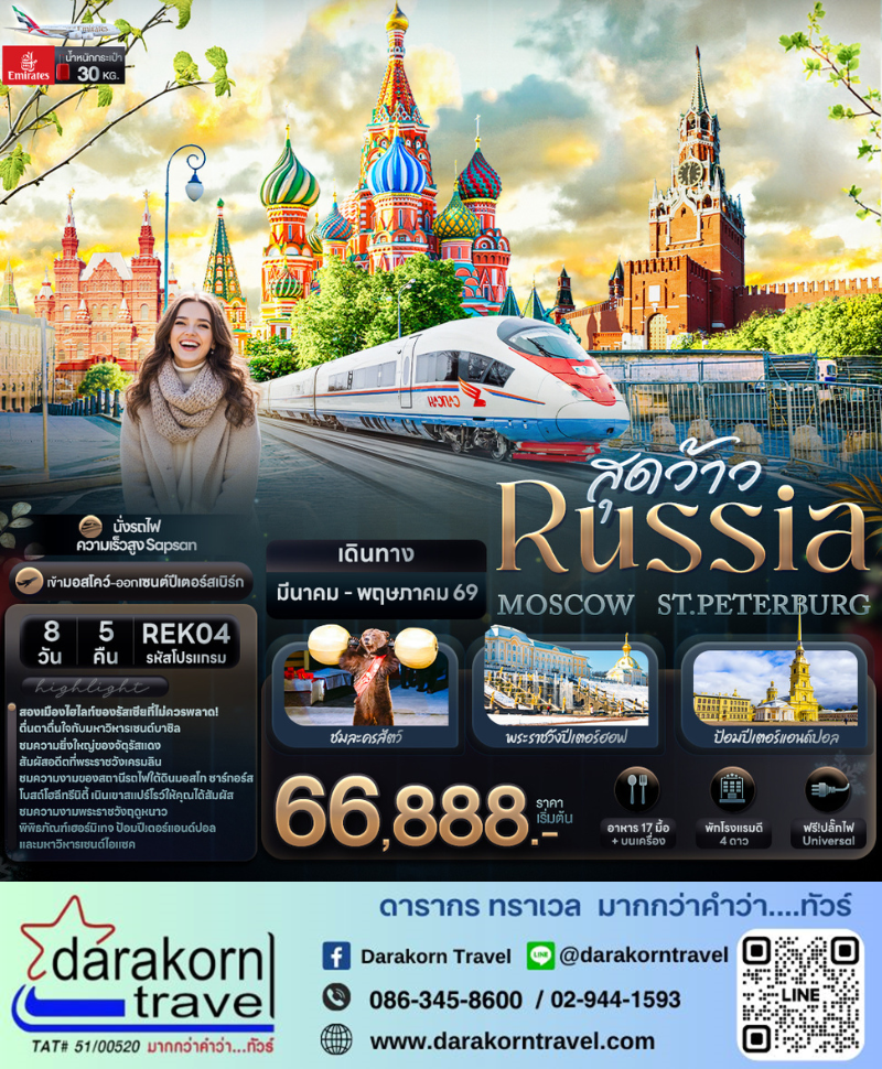 ทัวร์รัสเซีย - สุดว้าว RUSSIA MOSCOW ST.PETERBURG 8วัน5คืน(EK)เดือนมีนาคม - พฤษภาคม 2569