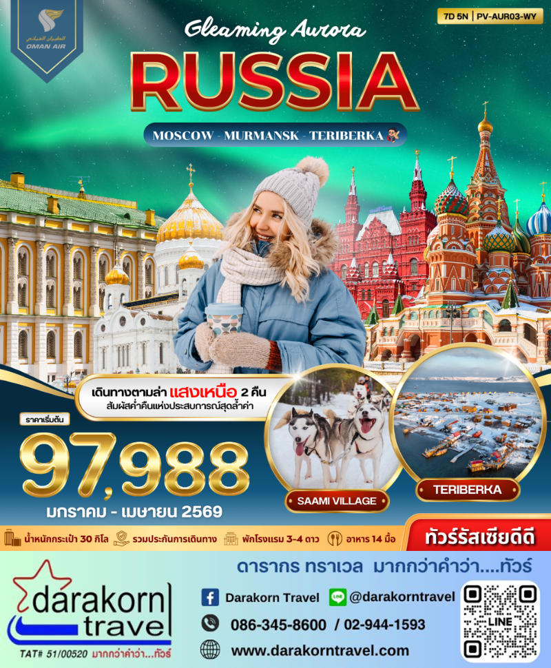 | DAY1 | สนามบินสุวรรณภูมิ – สนามบินมัสกัต (MCT) – สนามบินมอสโคว (SVO) |