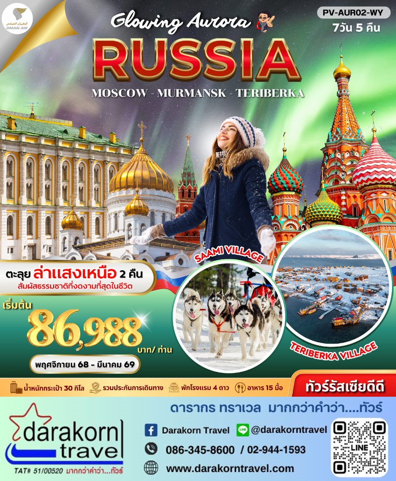 | DAY1 | สนามบินสุวรรณภูมิ – สนามบินมัสกัต (MCT) – สนามบินมอสโคว (SVO) |