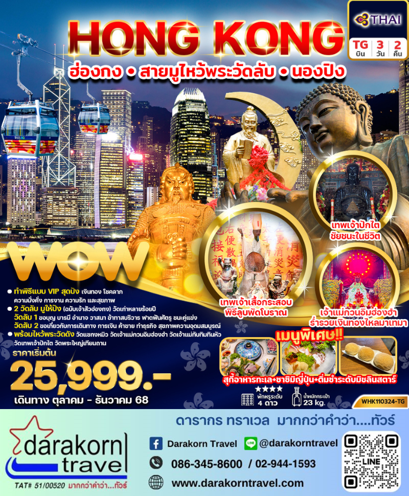 ทัวร์ฮ่องกง - สายมู ไหว้พระวัดลับ นองปิง 3วัน2คืน(TG)เดือนพฤศจิกายน 2568 - เมษายน 2569