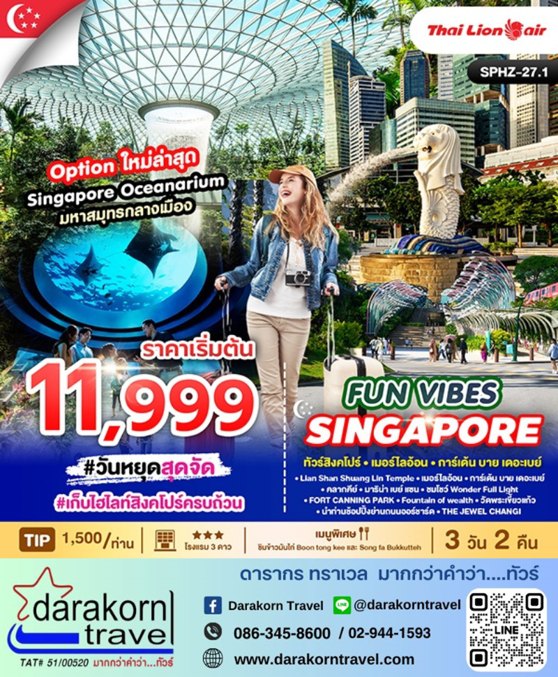 | DAY1 | กรุงเทพฯ – สิงคโปร์ –Lian Shan Shuang Lin Temple- เมอร์ไลอ้อน – การ์เด้น บาย เดอะเบย์ – คลากคีย์ -มาริน่า เบย์ แซน – ชมโชว์ Wonder Full Light |