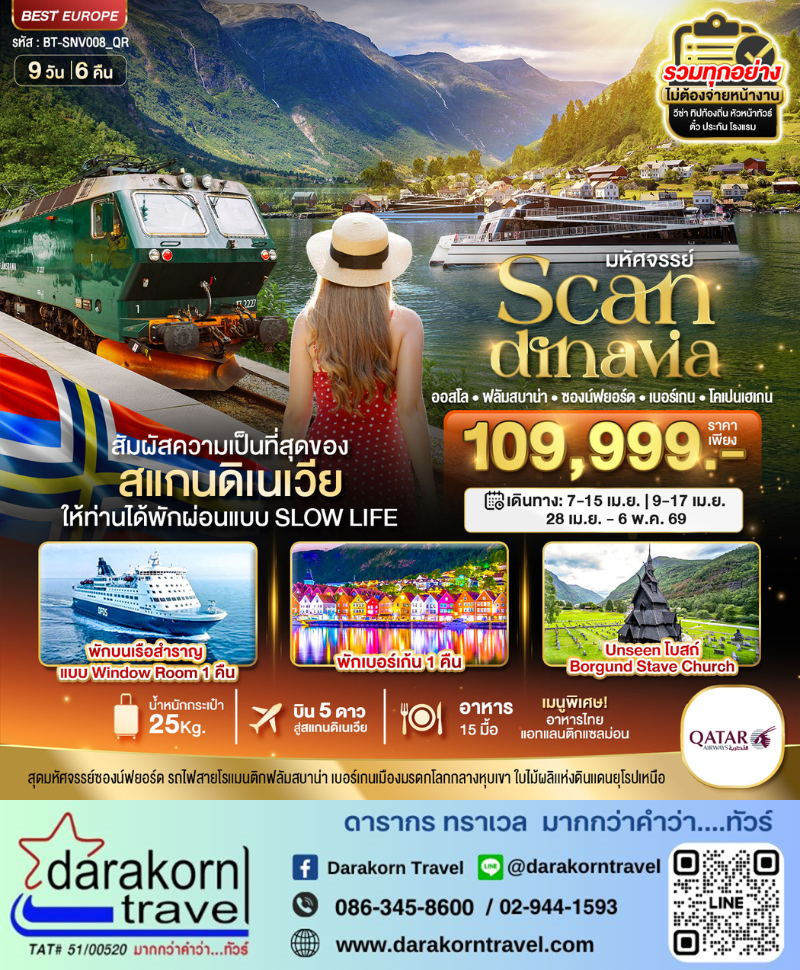 ทัวร์สแกนดิเนเวีย – เที่ยวเหนือให้สุด ปังทุกจุดไม่ต้องบน 10วัน7คืน(QR)เดือนมกราคม – มีนาคม 2569