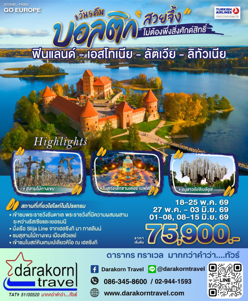 ทัวร์ยุโรป -บอลติก สวยจึ้งไม่ต้องพึ่งสิ่งศักด์สิทธิ์ 8วัน5คืน(TK)เดือนพฤษภาคม - มิถุนายน 2569