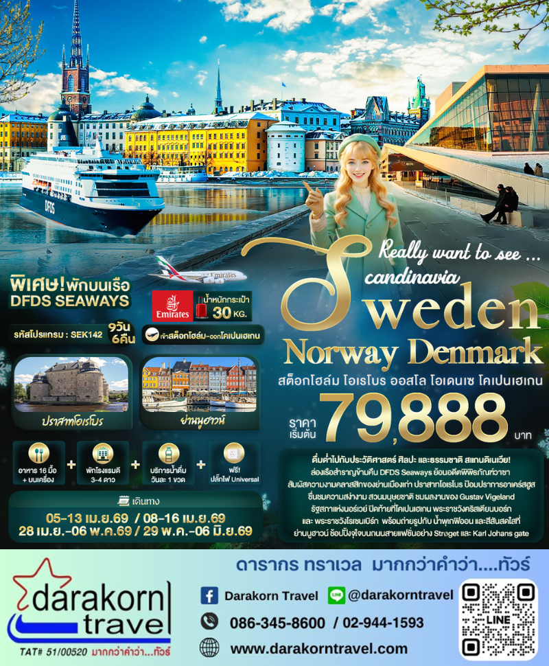 | DAY2 | ท่าอากาศยานนานาชาติสุวรรณภูมิ – ท่าอากาศยานนานาชาติดูไบ สหรัฐอาหรับอามิเรตส์ แวะพักเปลี่ยนเครื่อง – ท่าอากาศยานนานาชาติสตอกโฮล์ม อาร์ลันดา ประเทศสวีเดน – เมืองสตอกโฮล์ม – พิพิธภัณฑ์วาซา – ย่านเมืองเก่า Gamla Stan |