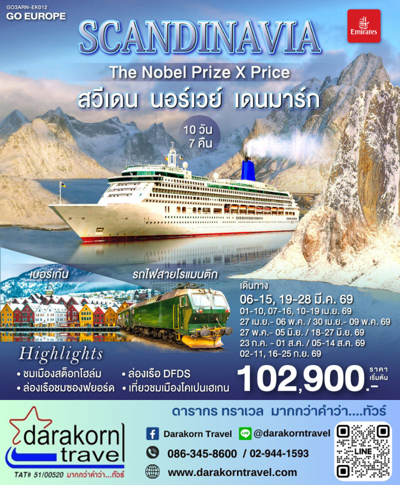 ทัวร์สแกนดิเนเวีย- SCANDINAVIA THE NOBEL PRIZE X PRICE 10วัน7คืน(EK)เดือนกุมภาพันธ์ - กันยายน 2569