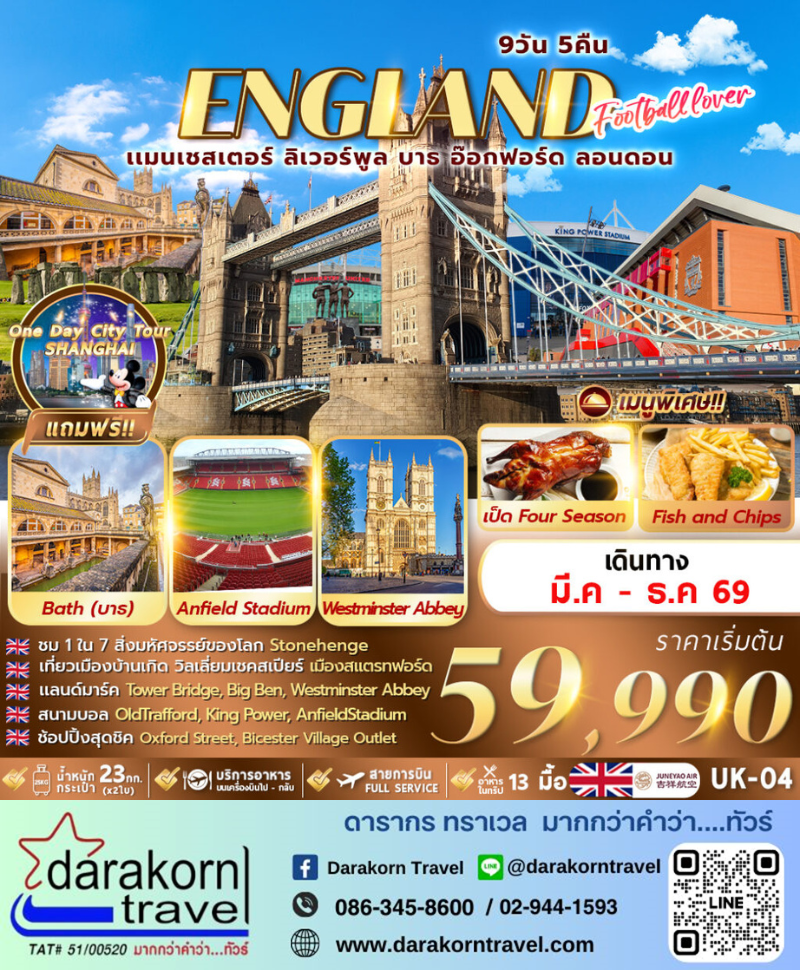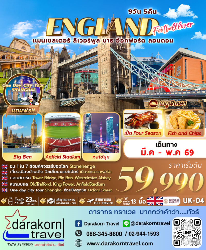 เซี่ยงไฮ้ – แมนเชสเตอร์ – ลิเวอร์พูล – สนามแอนฟิลด์ – แมนเชสเตอร์ – สนามฟุตบอล โอลด์ แทรฟฟอร์ท – วิหารแมนเชสเตอร์ |