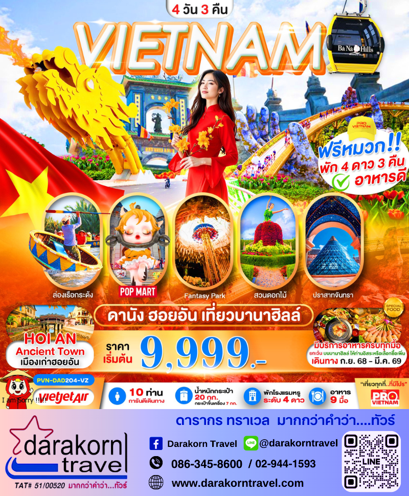 DAY4 | เมืองดานัง-หาดหมีเคว-ร้านกาแฟAfternoon Tea-วัดลิงห์อึ๋ง-Café Son Tra Marina -สวนเอเปค -Wonder Park Danang Golden Bay-ตลาดฮาน-สนามบินดานัง – สนามบินสุวรรณภูมิ (กรุงเทพ) |