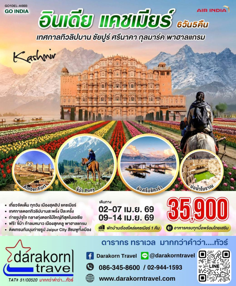 | DAY1 | กรุงเทพฯ – กรุงเดลี – ประตูมงคล 9 ชั้น Patrika Gate – เมืองชัยปุระ นั่งรถโค๊ชใหญ่ ประมาณ 5 ชั่วโมงถนนตัดใหม่สบาย มีจุดแวะพัก |