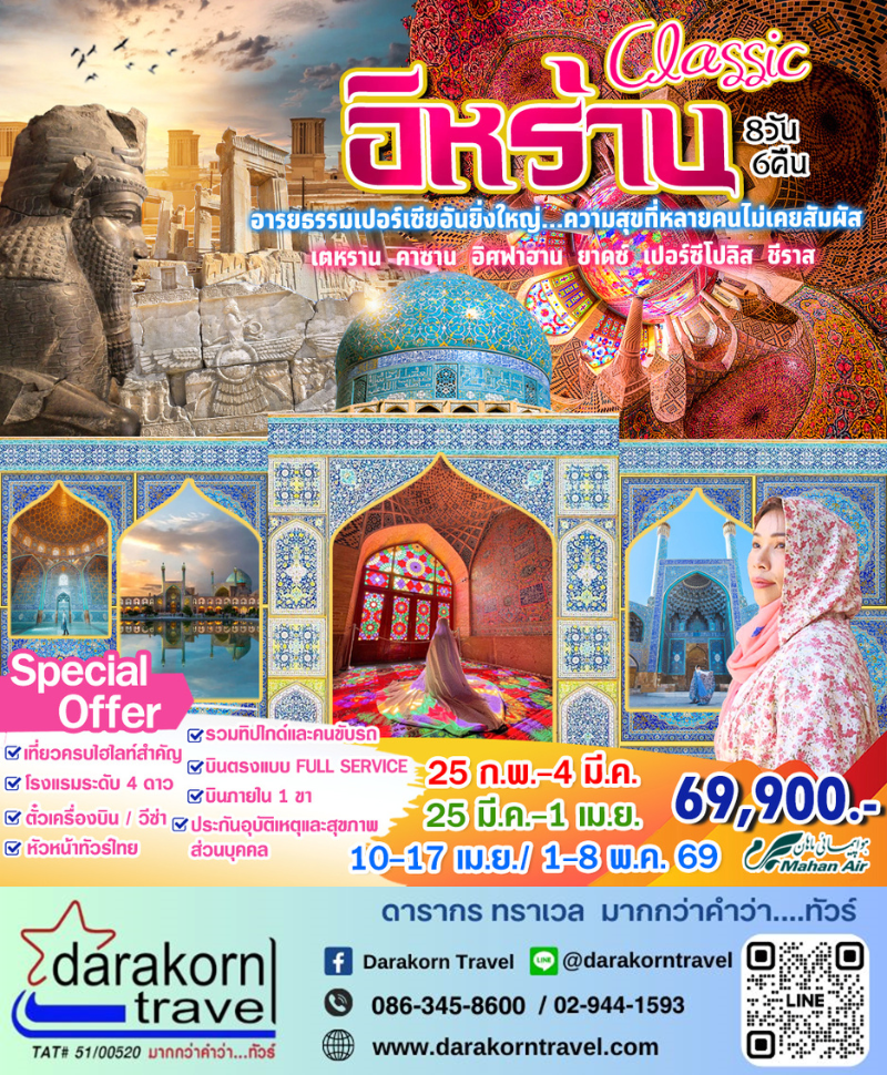 | ทัวร์อิหร่าน – Classic อิหร่าน อารยธรรมเปอร์เซีย 8วัน6คืน(W5)เดือนกุมภาพันธ์ – พฤษภาคม 2569 |