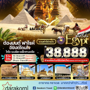 | DAY 3 | เมืองเมมฟิส – เมืองโบราณซัคคารา – พีระมิดขั้นบันไดกษัตริย์โจเซอร์–เมืองกีซา – มหาพีระมิดแห่งกีซา – มหาสฟิงซ์– โรงงานผลิตหัวน้ำหอม– ศูนย์กลางการทำกระดาษปาปีรุส |