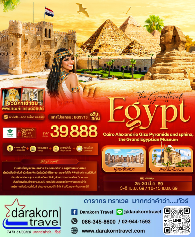| DAY4 | เมืองไคโร – พิพิธภัณฑ์แกรนด์อียิปต์ – เมืองอเล็กซานเดรีย – ป้อมปราการซิทาเดล |