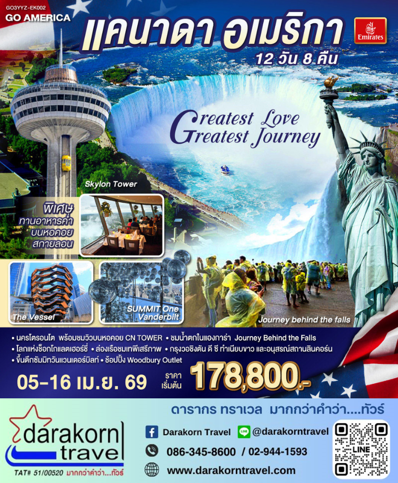 | DAY 2 | สนามบินดูไบ (สหรัฐอาหรับเอมิเรตส์) – สนามบินโตรอนโต – ชมเมือง – ช้อปปิ้ง (แคนาดา) |