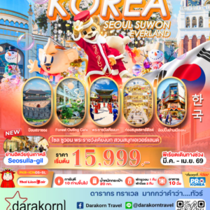 | DAY4 | วัดชอนวังซา – ศูนย์น้ำมันสนเข็มแดง – ศูนย์แสดงชุดเครื่องนอน SESA LIVING – ซุปเปอร์มาร์เก็ต- ศูนย์สมุนไพรโสมและฮอตเกนามู – ดิวตี้ฟรี – ช้อปปิ้งในดาวน์ทาวน์ |