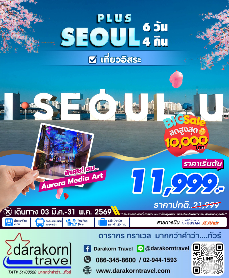 | DAY5 | ท่องเที่ยว ณ กรุงโซล 1 วัน (ไม่มีรถรับ-ส่ง) |
