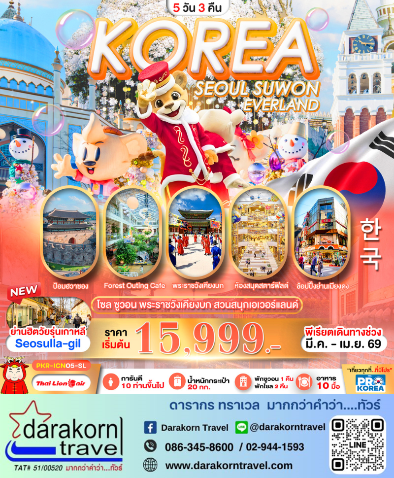 | DAY3 | ห้องสมุดสตาร์ฟิลด์ซูวอน – สวนสนุกเอเวอร์แลนด์ – กรุงโซล – ศูนย์รวมเครื่องสำอางเกาหลี – ช้อปปิ้งย่านฮงแด |