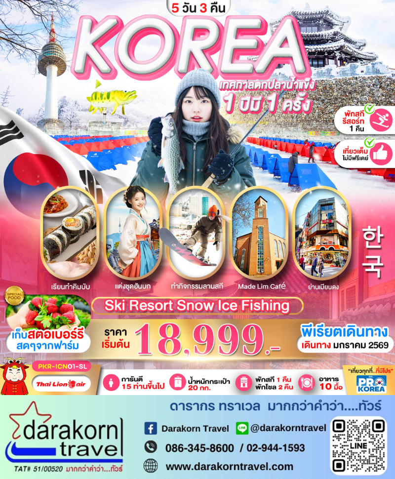 | DAY3 | เก็บสตอร์เบอร์รี่ที่ฟาร์ม-เทศกาลตกปลาน้ำแข็ง (1ปีมี1ครั้ง)(รวมค่าเข้างานเทศกาล)-อิสระช้อปปิ้งย่านฮงแด |