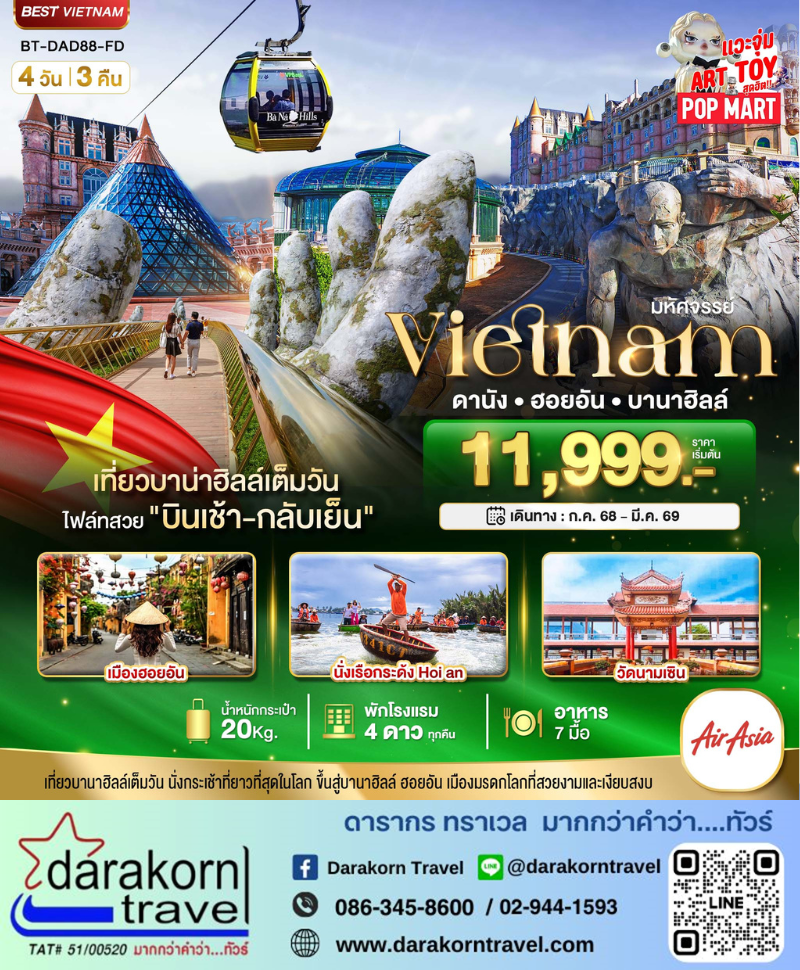 DAY1 | ดอนเมือง กรุงเทพฯ •สนามบินดานังเวียดนาม•Wonder Park•วัดลินห์อึ๋ง•Apec Parkสะพานมังกร •ตลาดกลางคืนเซินตรา |