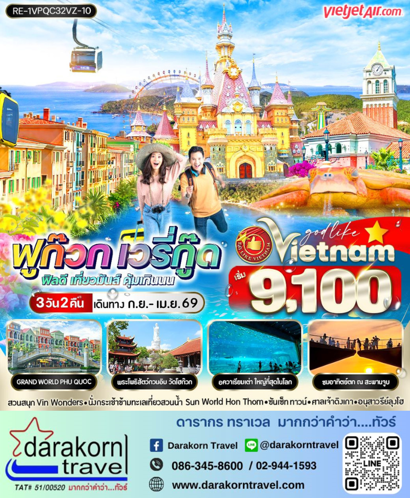 ทัวร์เวียดนาม – เวียดนามฟูก๊วก!!! สระอึ้ง จึ้งไปเลย 3วัน2คืน(VZ)เดือนตุลาคม 2568 – เมษายน 2569