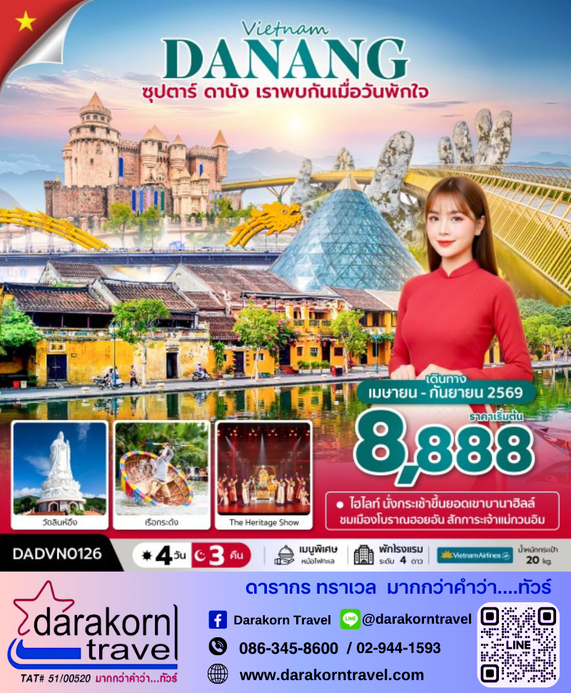 | DAY1 | ท่าอากาศยานสุวรรณภูมิ – ท่าอากาศยานนานาชาติดานัง |
