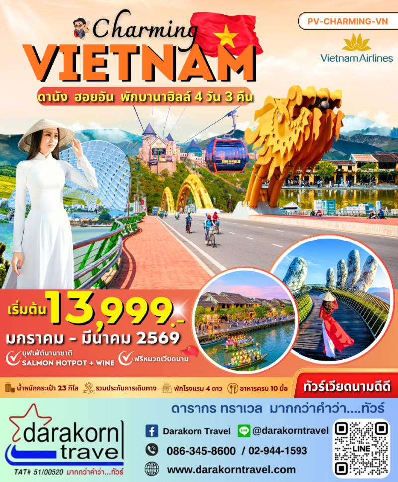 | DAY1 | สนามบินสุวรรณภูมิ– ดานัง – ถ่ายรูปสะพานมังกร |