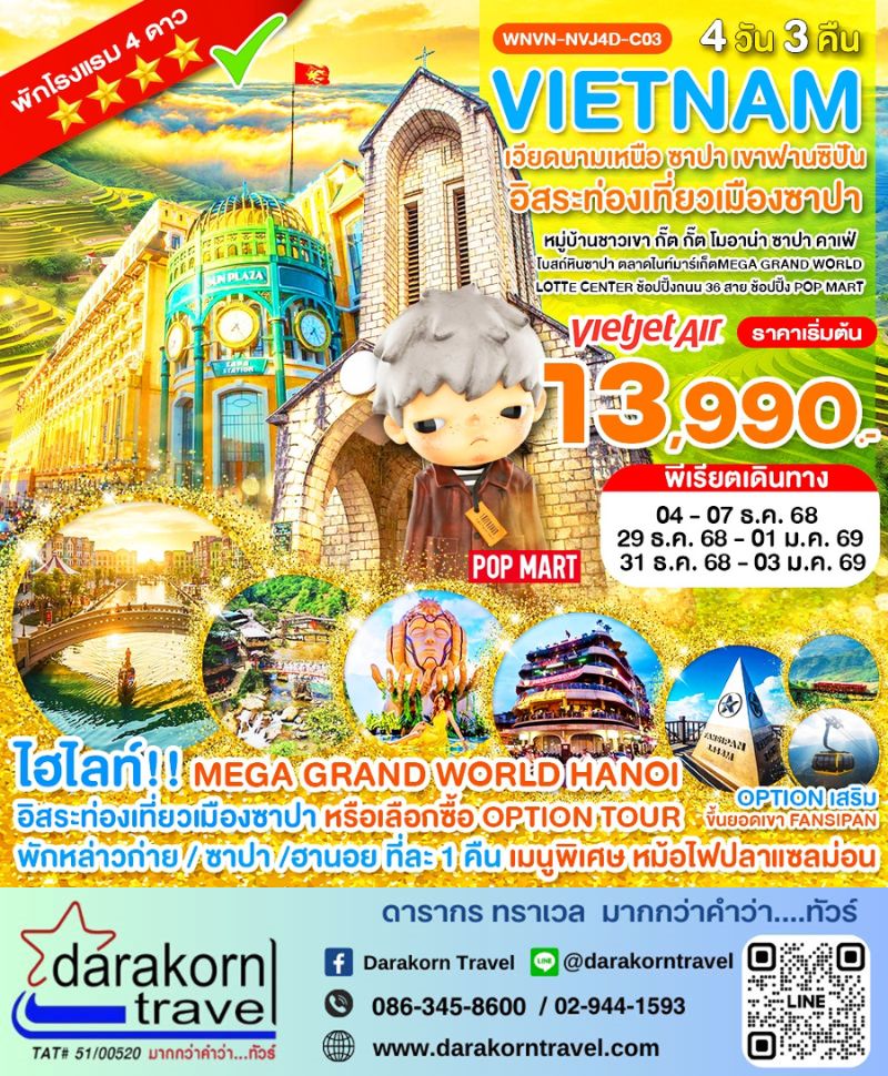 | DAY3 | เมืองซาปา – เมืองฮานอย – ร้านเยื่อไผ่ – MEGA GRAND WORLD HANOI – ถนน 36 สาย – ทะเลสาบคืนดาบ – พักฮานอย |