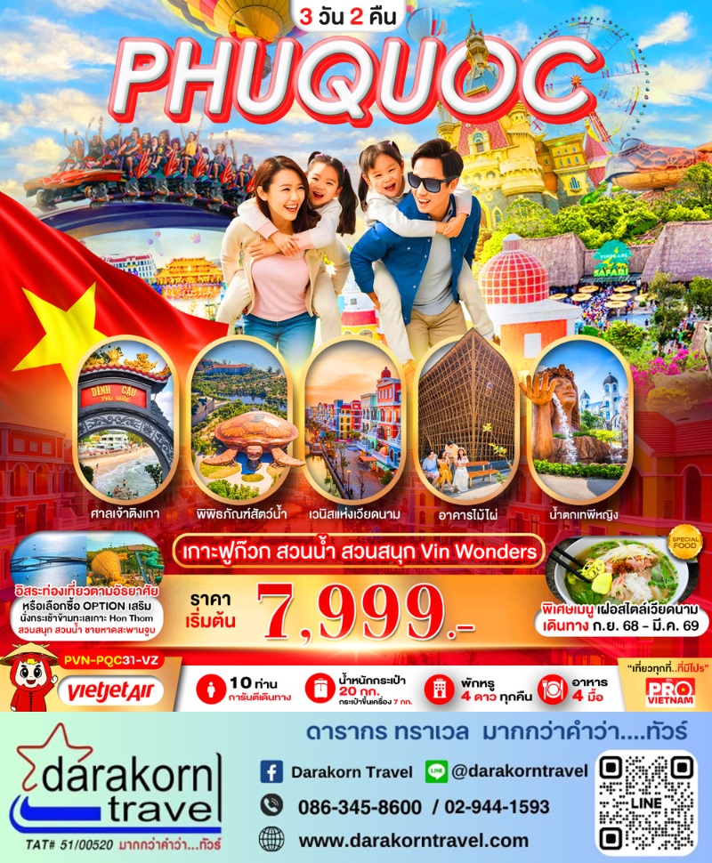 DAY1 | สนามบินสุวรรณภูมิ-สนามบินฟูก๊วก-สวนสนุกและสวนน้ำ Vin Wonder-AQUARIAMรูปเต่าGrand World PhuQuocเวนิสแห่งเวียดนาม-อาคารไม้ไผ่-หมู่บ้านเวนิส-ชมโชว์ The Color of Venice |